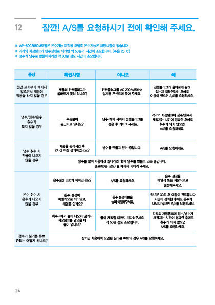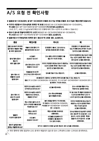 확인 후에도 동일증상 이라면 [홈페이지 A/S접수] 또는 [고객센터(1588-2290)]로 A/S를 요청해주세요
