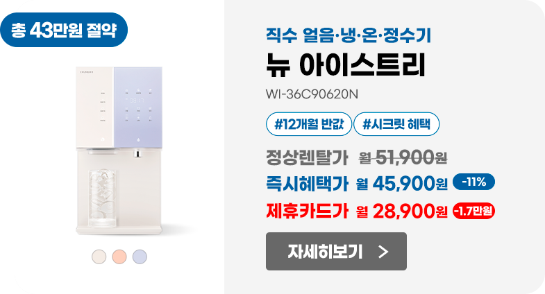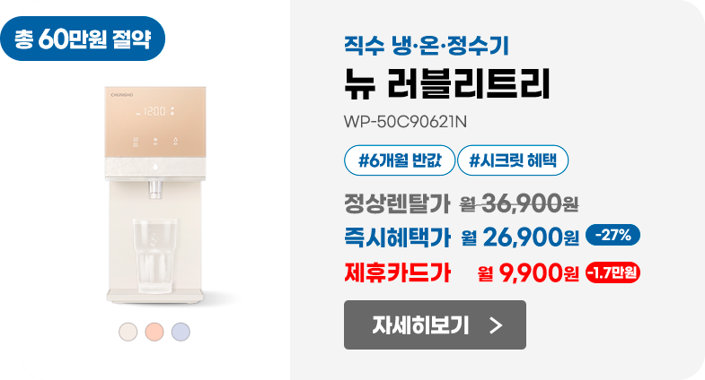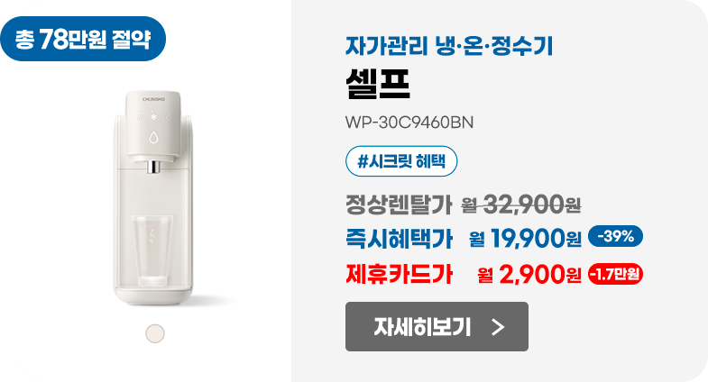 본 내용은 청호나이스(주) 서비스가 적용되는 개별서비스의 마케팅 수신동의를 포함하고 있으며, 마케팅 정보 수신 동의 시 개별서비스의 마케팅 수신에 일괄 동의한 것으로 처리됩니다.