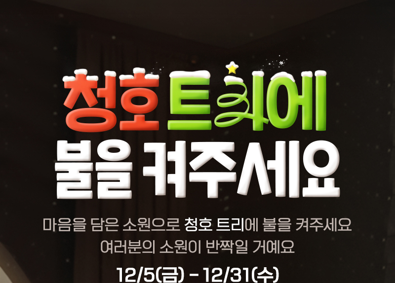 청호 트리에 불을 켜며 올 한 해를 돌아보니 청호나이스의 기술과 서비스가 우리 일상에 큰 힘이 되었음을 느낍니다 앞으로도 더 많은 사람들에게 사랑받는 브랜드가 되길 바랍니다 청호나이스 항상 응원합니다