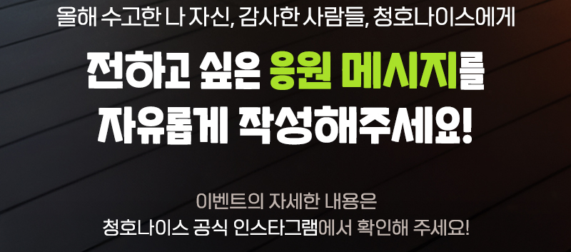 청호나이스 덕분에 올 한 해 깨끗하고 건강하게 보낼 수 있었습니다 내년에도 더 많은 가정에 따뜻한 빛을 전해주시길 응원합니다