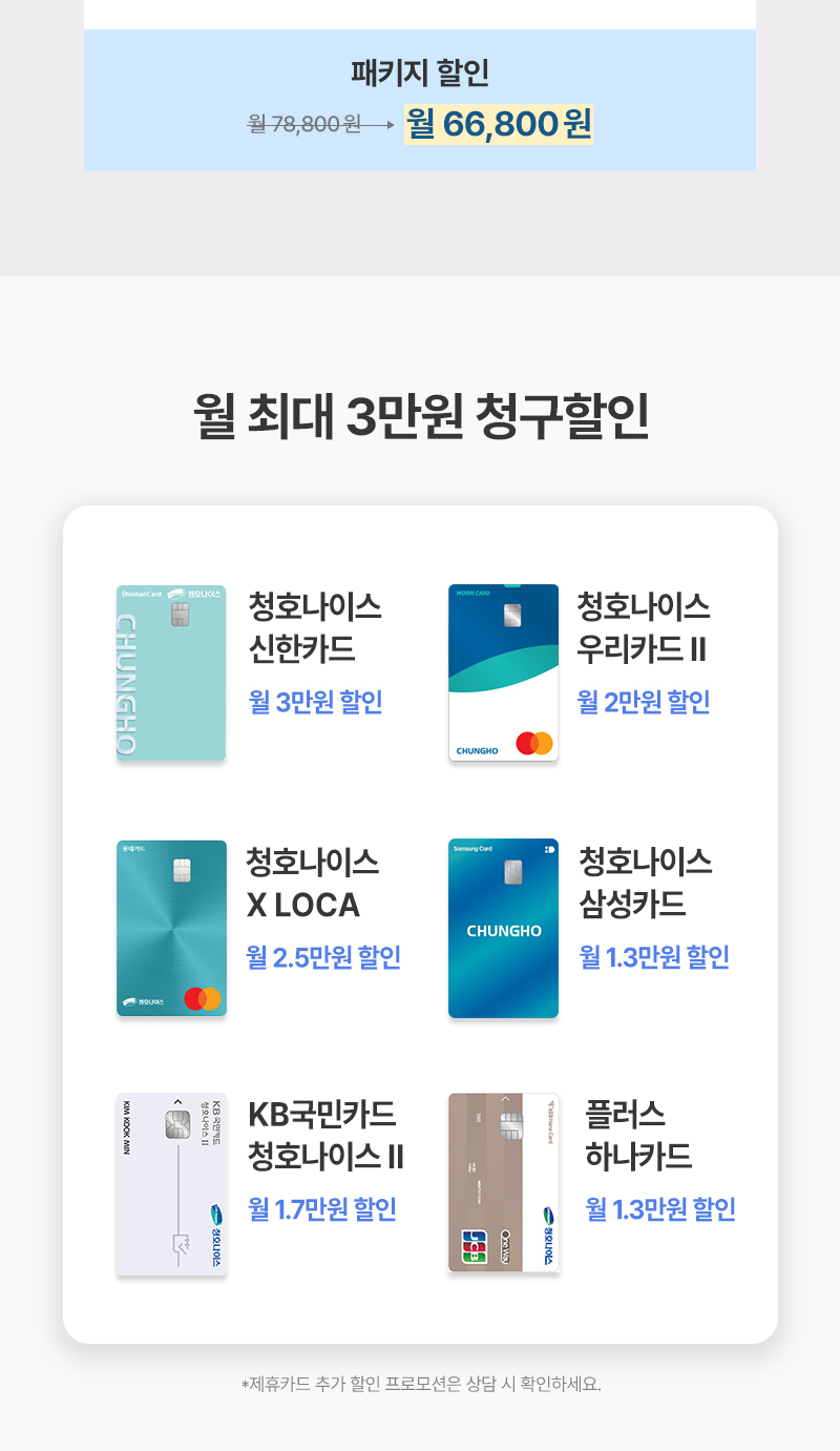 기본 렌탈 제품과 동일하게 제휴카드 발급 후 청호나이스 고객센터 출금 동의 신청 시, 할인 적용 가능 합니다.