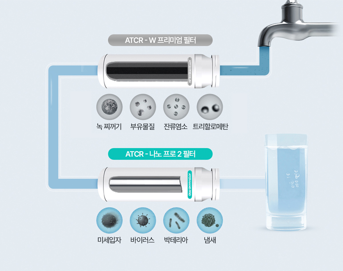 청호나이스의 NANO 직수 필터링 기술로 완벽하게 제거합니다.