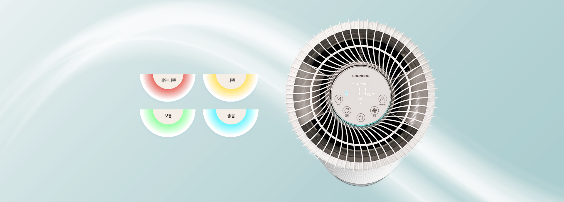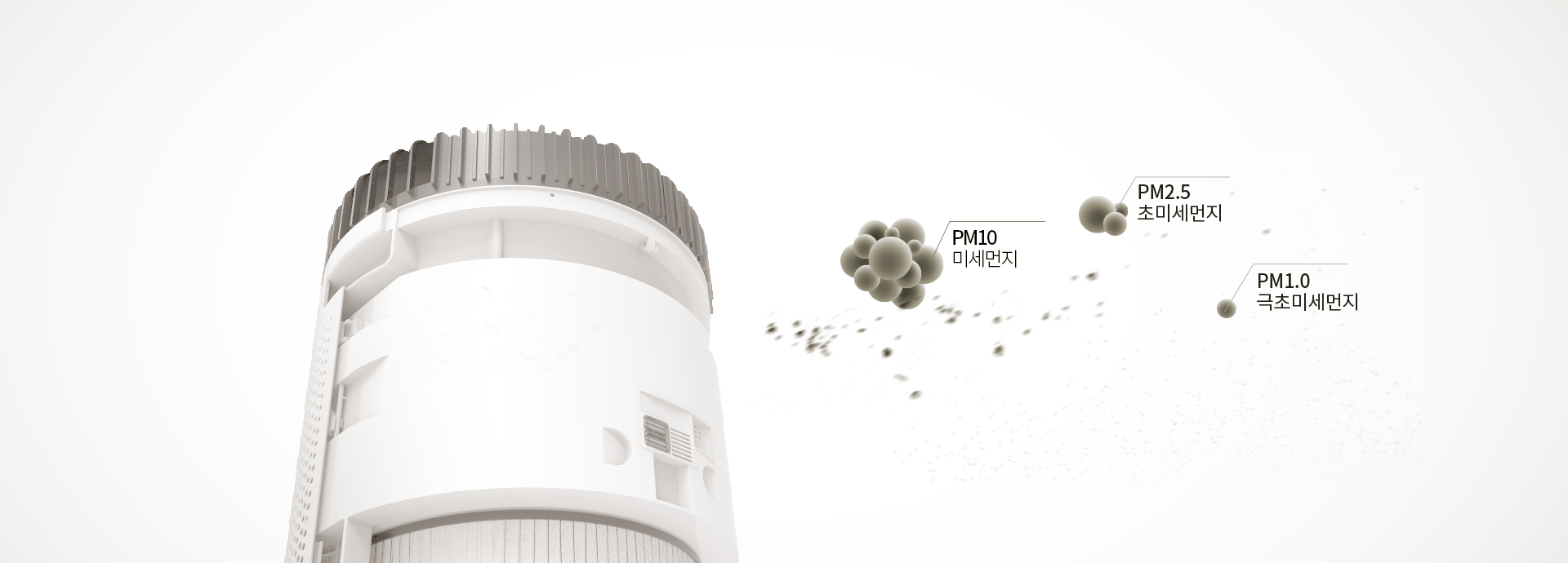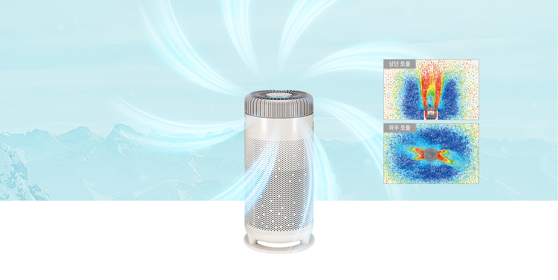 공기역학적인 설계로 공기흐름을 상승시켜 청정한 공기를 멀리 내보냅니다.
