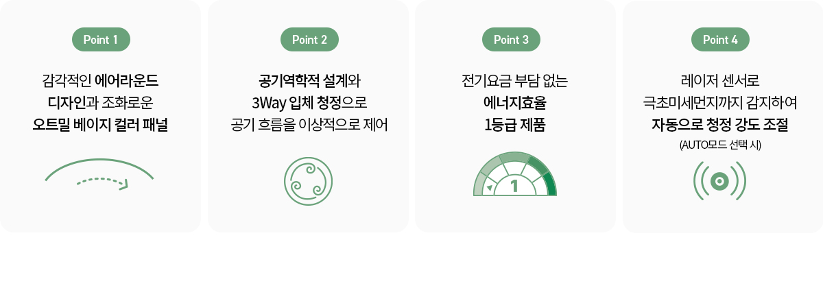 강력 청정은 물론 고효율 등급으로 전기세까지 절약하는
