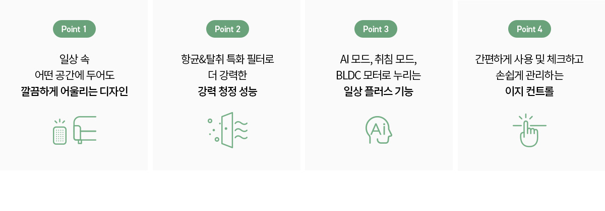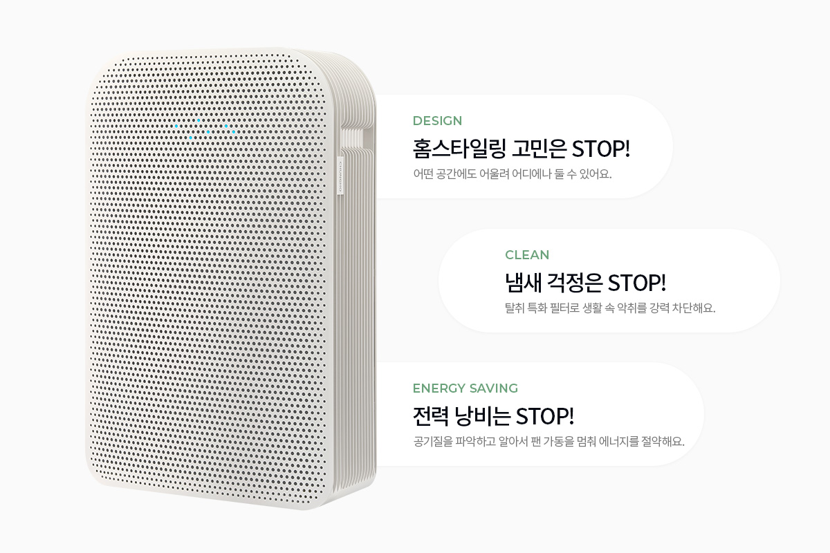공간에 어울리는 디자인, 더 강력해진 탈취 특화 필터,