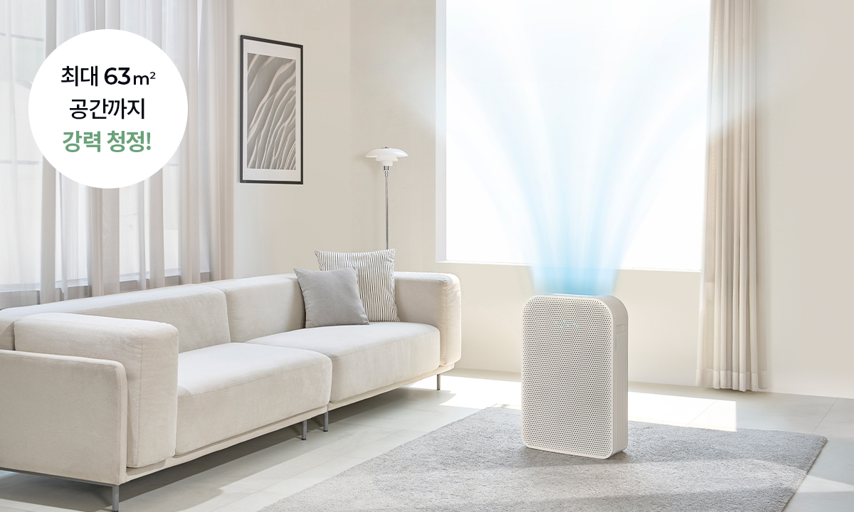 63 ㎡까지 한 번에 커버 가능한 청정화 능력(분당 청정공기 공급량)으로