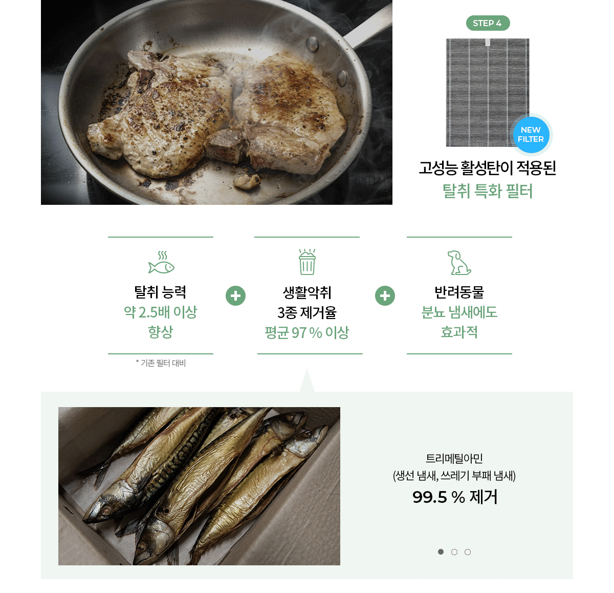 기존 필터 대비 약 2.5배 이상 탈취 능력이 향상되었습니다.