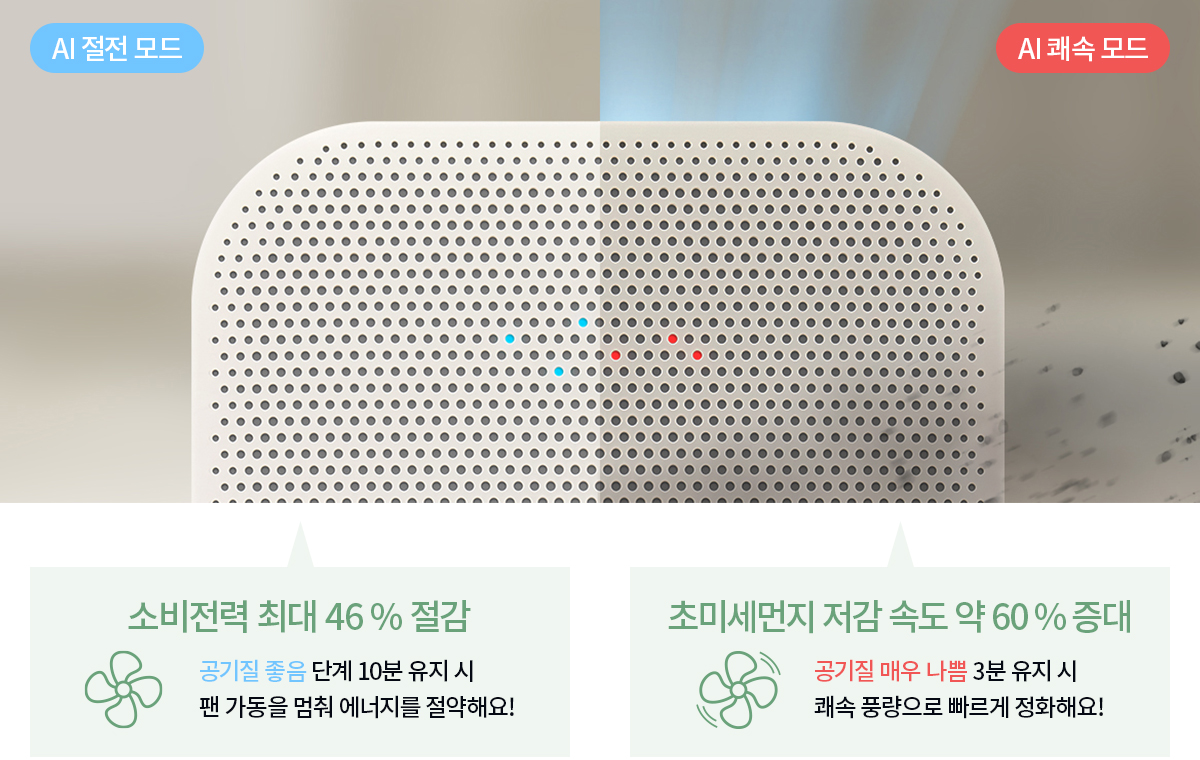 공기질이 나쁠 경우 더 빠르게 청정하는 AI 쾌속모드를
