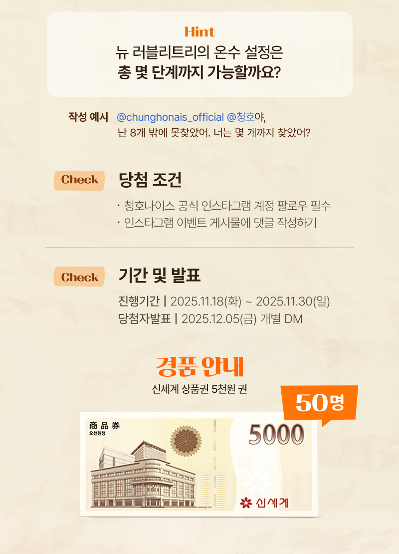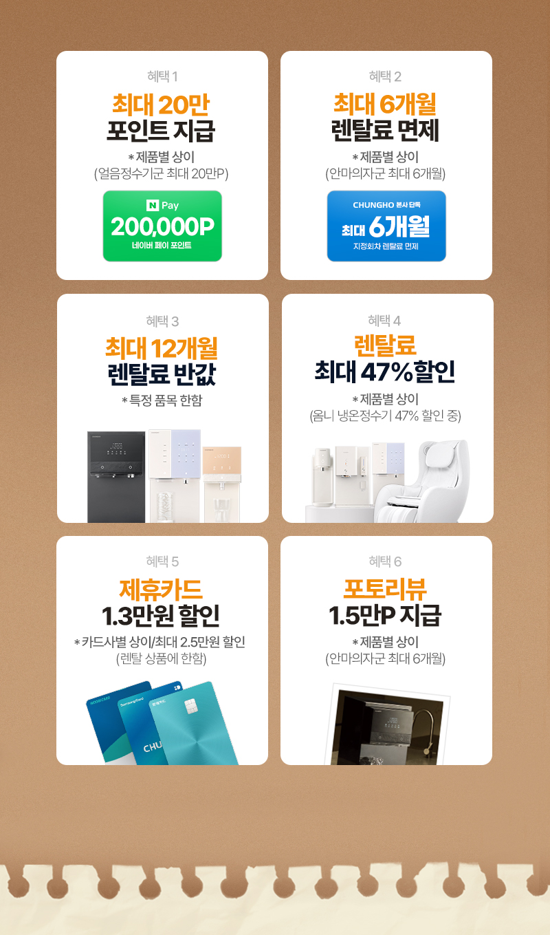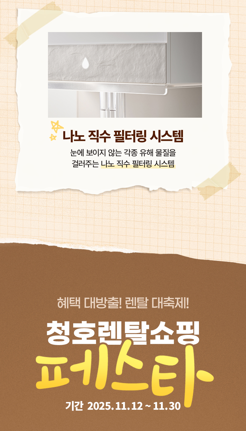 이벤트 혜택 이벤트 종료된 이벤트 당첨자 발표 이벤트 슬림한 뉴 러블리트리를 찾아라 2025.11.18 ~ 2025.11.30 혜택 대방출! 렌탈 대축제! 청호 렌탈쇼핑 페스타 목록