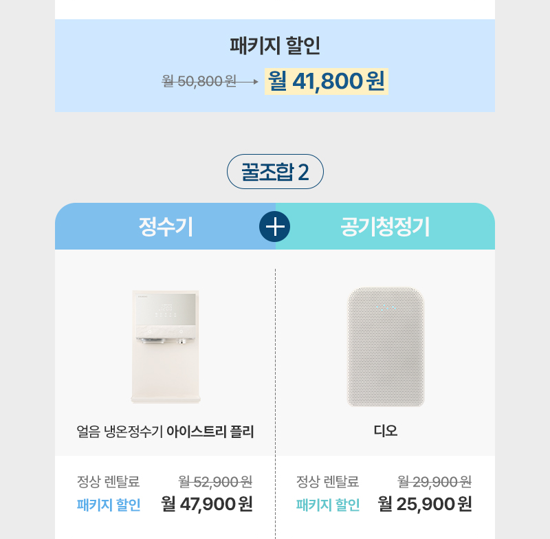 기본 렌탈 제품과 동일하게 제휴카드 발급 후 청호나이스 고객센터 출금 동의 신청 시, 할인 적용 가능 합니다.