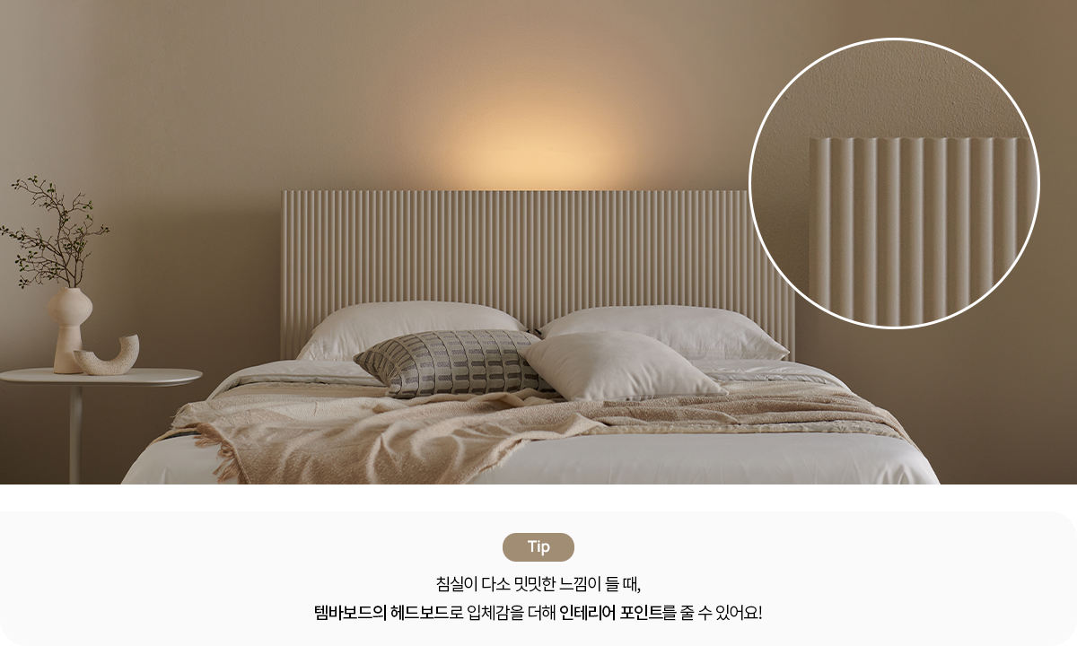 부드러운 곡선이 패턴처럼 이어지는 템바보드 디자인으로 모던함을 강조해 보세요.