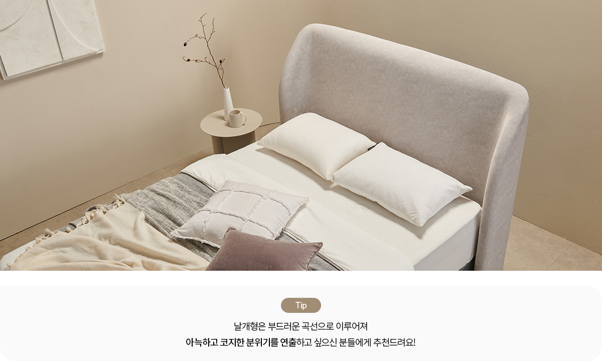 매트리스를 감싸는 듯 안락함을 선사하는 쿠션 날개형 프레임