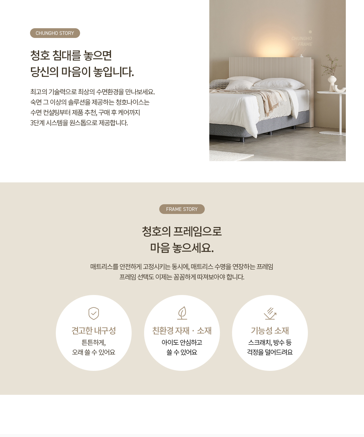 청호 프레임은 E0등급의 친환경 자재로 안심하고 사용하실 수 있습니다.