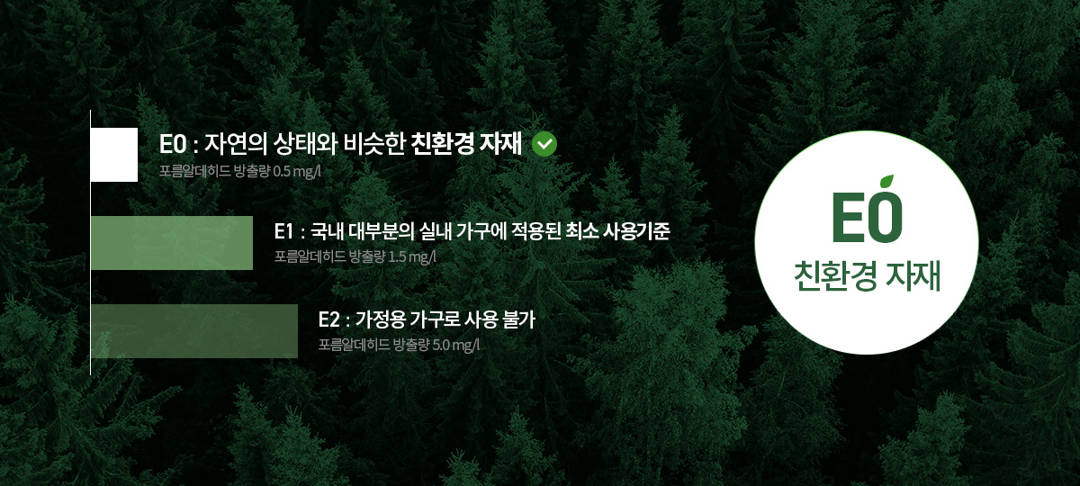환경등급으로 E0등급 목재는 자연의 상태와 비슷한 수준의 친환경 자재입니다.