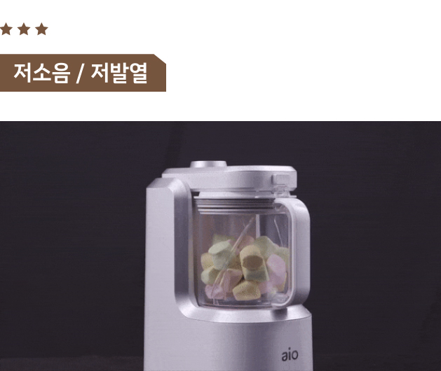 aio 언발란스 블렌더는 18,000RPM만으로도 강하고 빠른 블렌딩이 가능하며, 발열(연속 사용해도 30도 정도) 또한 낮춰 높은 온도에서 영양소가 파괴되는 것을 막는 것은 물론, 1000W (실파워 1,800w) 저소음 모터를 사용해 낮은 소음으로 편안하게 블렌딩이 가능합니다.