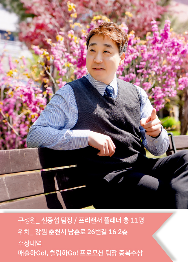남춘천지사 신종섭 팀장은 ‘매출하Go! 힐링하Go!’ 프로모션의 우승 비결로 단연 ‘단합력’을 꼽았다. 프로모션이 진행된 2월은 특히나 영업일이 짧아서 단합을 잘해야 목표 달성이 가능했기 때문이다.