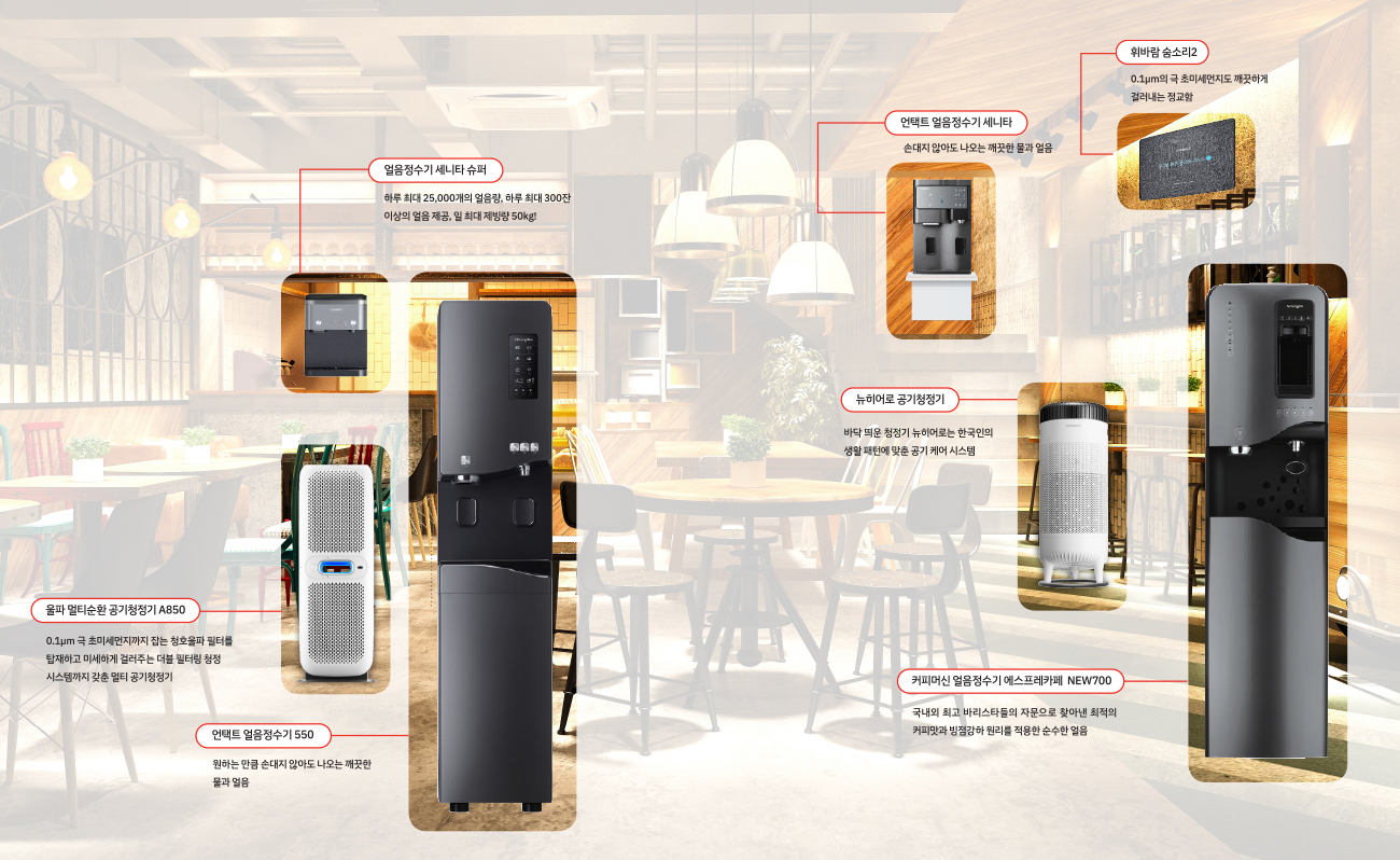 올 때마다 기분 좋은 카페로 만들기 위해 청호나이스가 카페 맞춤 제품을 추천합니다!