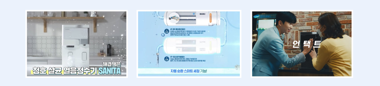 코로나로 인해 일상이 많이 변했습니다. 집보다 바깥에서의 시간을 훨씬 많이 보내는 우리는 매번 코로나 바이러스에 노출되어 있습니다. 특히 요즘처럼 무더운 여름에 땀도 많이나고 시원한 물을 찾을 수 밖에 없는데요. 불특정 다수가 터치할 수밖에 없는 정수기를 이용 할때 은연 중에 많이 걱정하셨죠? 목마름을 아예 참는 분들도 많았을 겁니다. 하지만 이제 걱정하지 마세요! 손대지 않아도 나오는 깨끗한 물과 얼음, 우리 청호 언택트 세니타를 소개합니다!