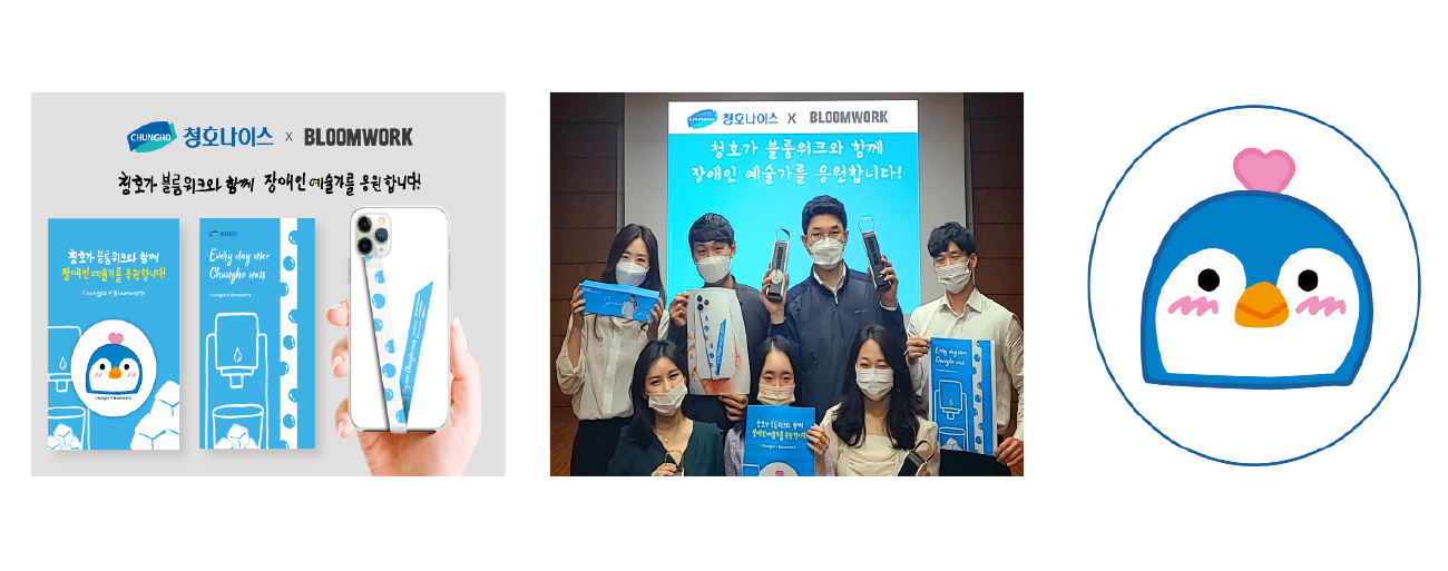 블룸워크는 재능 있는 장애인 아티스트와 협업하고, 사회적 참여를 증진시킴으로써 특별한 디자이너로 성장할 수 있도록 도와주는유니버설 디자인 사회적 소셜벤처입니다. 우리 청호도 사회적으로 여러 계층에 관심을 가지며 기부도 많이 하고 있는데요, 이번에 청호나이스와 블룸워크의 특별한 디자이너들이 뜻을 같이 하여 콜라보레이션을 진행하였습니다!
