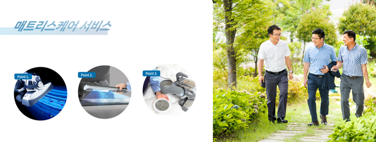 “사실 매트리스는 아무리 케어를 잘해도 고객이 보기에는 별로 티가 안 납니다. 시간이 지나면 매트리스 케어가 얼마나 중요한지 아시지만, 처음에는 정성을 들여도 고객 만족도가 높지 않죠. 그래서 저희는 일단 보여주기식 영업을 합니다. 방충망 먼지나 에어컨 필터 먼지를 제거하는 것이죠. 이런 먼지들은 매트리스에 앉아 결국 세균을 번식시키는 주범이 되는데, A/S가 안 되니 고객이 직접 해야 하는 부분입니다. 다소 번거로울 수 있는 부분을 저희가 해 드리니, 고객 입장에서는 눈에 보이는 청결함을 얻고 서비스 만족도가 높아져 계약으로 이어지는 확률이 매우 높습니다. 케어해드리는 저희 입장에서도 매트리스 케어를 하면서 방충망이나 에어컨 필터의 먼지를 제거하는 것은 짧은 시간에 비교적 간단히 해드릴 수 있는 서비스이기도 하고요.”