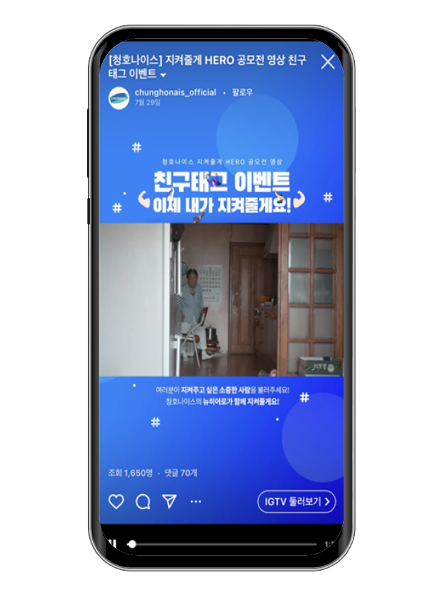 청호나이스 공식인스타에서 진행하는 지켜줄게 HERO 영상 공모전! 두번째 이야기