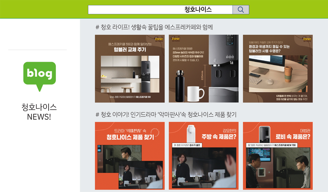 네이버 블로그엔 청호나이스의 어떤 소식이 있을까요?