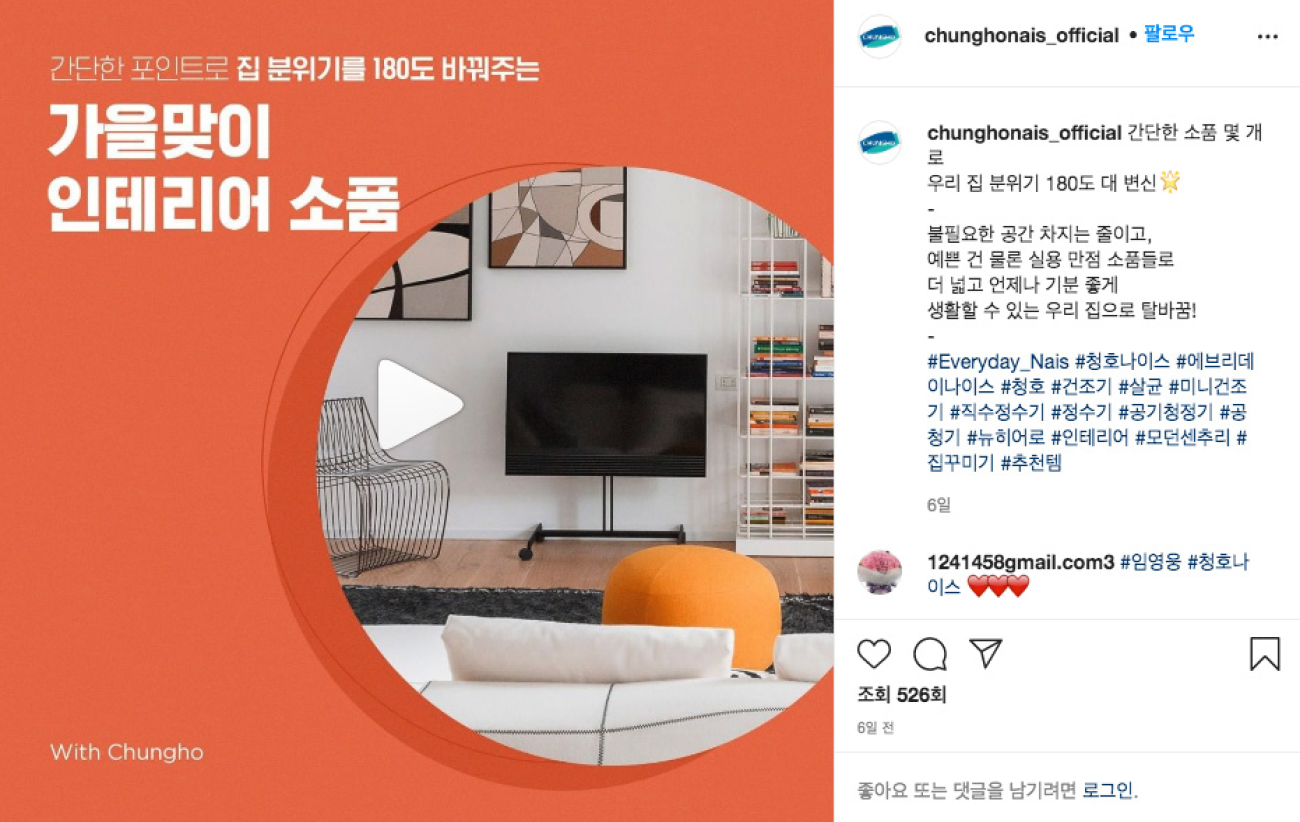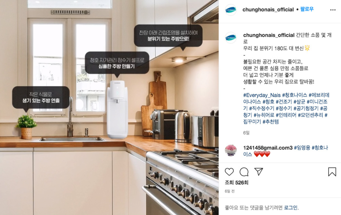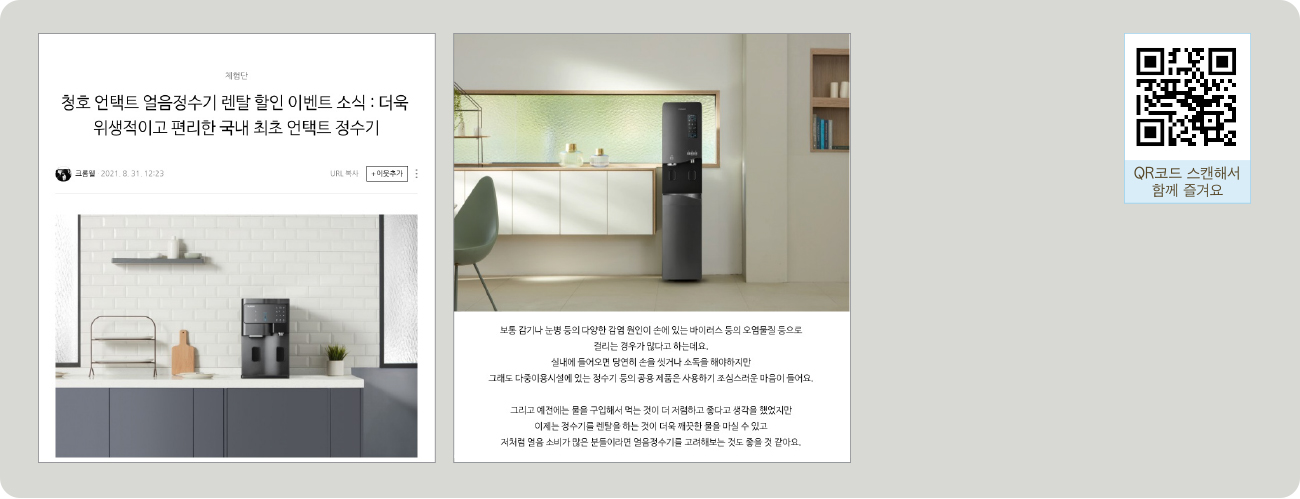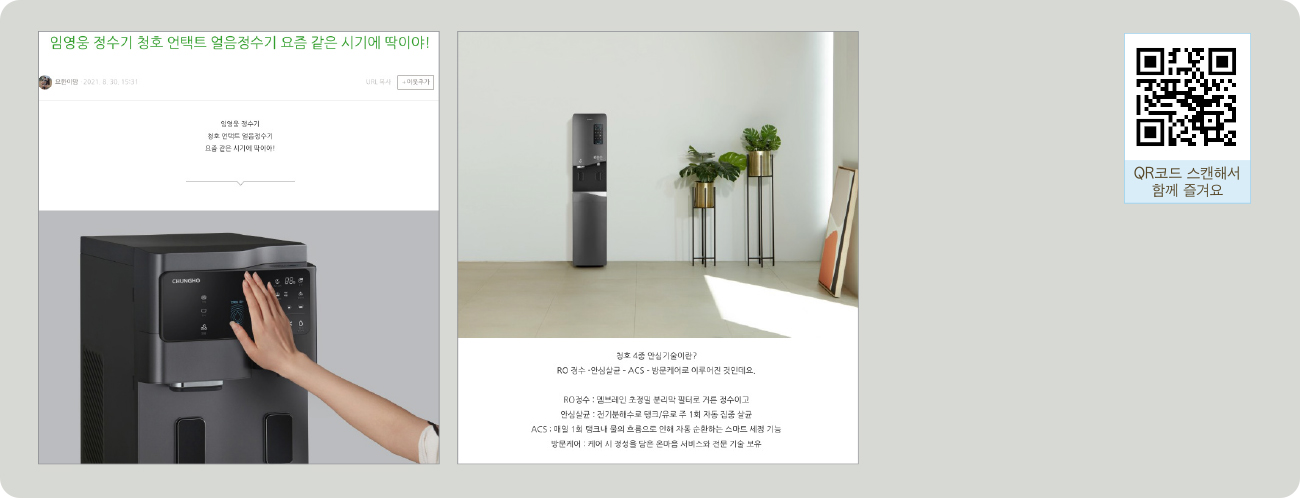 청호나이스 공식 인스타그램 계정과 블로그, 유튜브 계정에 들어가면