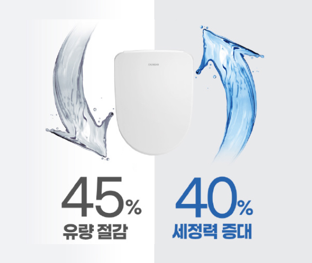 2. 기존 유량 대비 45% 적은양으로 세정력은 40% 증대*