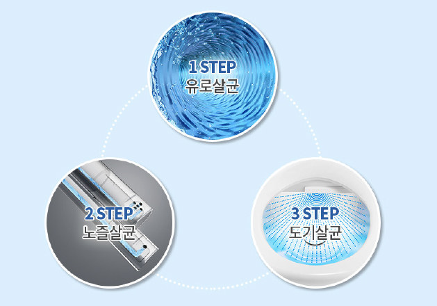 3. 트리플 살균 시스템*으로 유해세균 99.9% 제거**