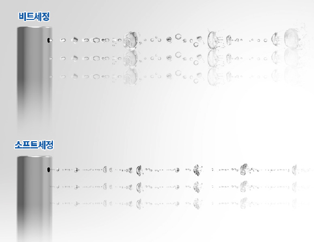 * 맥동수류 세정 : 물을 세밀하게 맺고 끊어 치는 맥동수류를 이용한 세정법