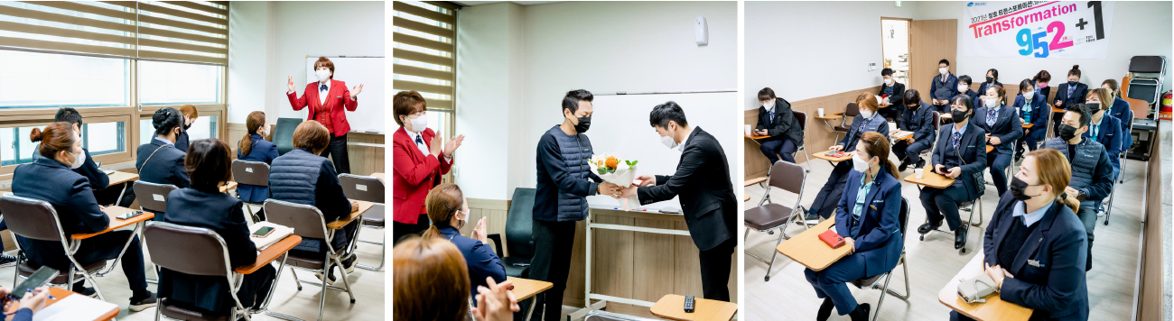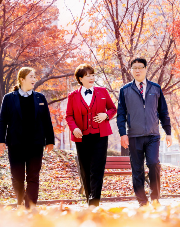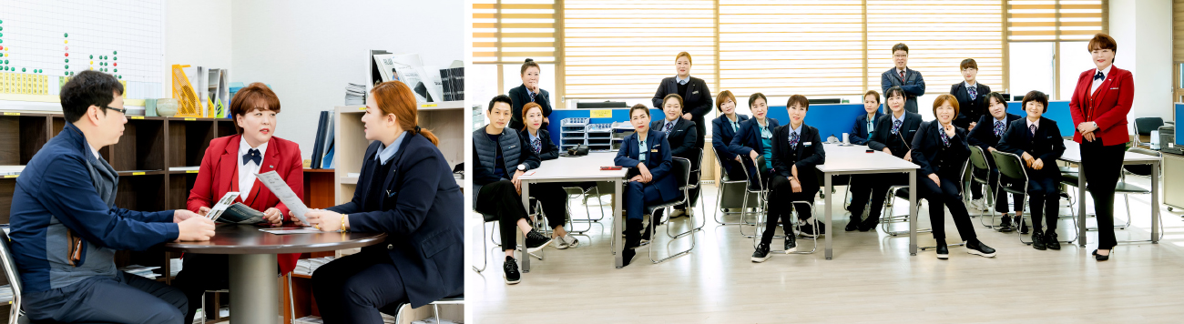 “지금 팀장님 두 분의 역할이 정말 컸어요. 감사하게 생각해요. 제가 가장 신뢰하는 김민욱 1팀장님은 제가 1%도 신경 쓰지 않아도 될 정도로 정말 관리를 잘하세요. 단결력 또한 지금까지 봐왔던 모든 팀 중 최고죠. 팀장님은 어떤 수단과 방법을 가리지 않고 해내며 ‘안 돼’라는 말이 없어요. 그러니 지사장인 저도 ‘안 돼’를 할 수가 없죠. 박정희 2팀장님은 상록지사 발령을 희망해 올해 3월부터 함께하고 있어요. 팀장 경력도 많고 배려심도 있고 다소 센 성격도 유순해졌지요. 2팀장님은 장점이 정말 많아서 제가 그랬어요. ‘2팀장 장점만 가져가자’라고요. 이렇게 상록지사는 존중과 단결의 1팀, 열정의 2팀이 함께합니다.”