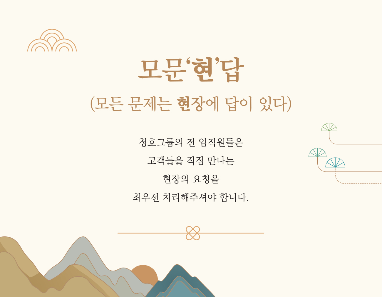 둘째 청호만의 신속하면서도 차별화된 업무 프로세스를 재확립해주시기 바랍니다.