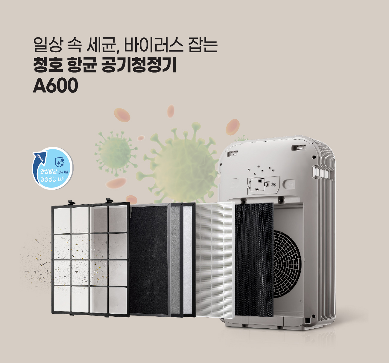 공기질에 민감함은 물론, 공기 중 세균과 바이러스에도 민감한 시대 소비자들의 걱정을 해소시켜줄, 스마트하게 진화된 공기청정기가 출시됐다. 청정은 물론, 보이지 않는 공기 중 세균과 바이러스까지 확실하게 제거해줄 청호 항균 공기청정기 A600을 만나보자!