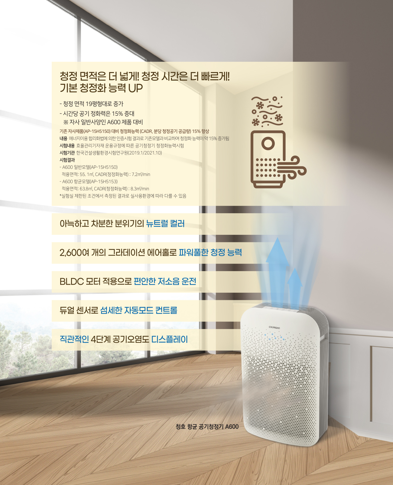적용면적: 55. 1㎡, CADR(청정화능력) : 7.2㎥/min