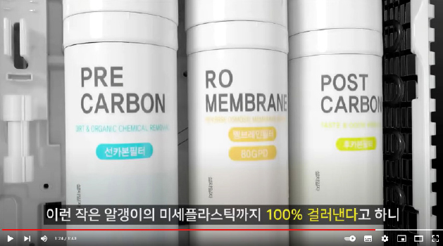 청호 정수기에 사용되는 역삼투압(RO) 멤브레인 필터는 미세플라스틱까지