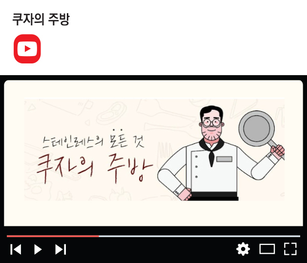 자취를 시작하고 누군가가 해주는 요리만 먹다가 처음으로 프라이팬을 잡으면서 궁금증이 생겨서 보게 된 채널인데, 주방도구 선택 방법이나 올바른 사용법 등 살림하는 사람 모두가 알면 좋은 주방 정보를 알려준다.