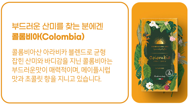 품질 좋은 커피의 대명사로 불리는 자메이카 블루 마운틴 커피(Jamaica Blue Mountain)는 해발 1200m 이상의 안개 자욱한 고산 지대인 자메이카 동쪽 블루 마운틴 지역의 시원한 기후와 습한 공기, 비옥한 토양에서 재배되는 커피입니다. 블루 마운틴 커피는 자메이카 커피 산업 위원회의 감독을 거쳐 까다로운 인증을 받은 커피만이 오직 블루 마운틴이라는 이름으로 불려지는데요. 커피의 부드러운 향미와 신맛이 조화로워 음미할수록 전체적인 밸런스가 뛰어난 커피로 산뜻하지만 전혀 가볍지 않은 바디감이 매력적인 커피로 평가 받고 있습니다. 세계 3대 커피이자, 커피의 황제로 불리며 영국 왕실의 커피로도 알려진 자메이카 블루 마운틴 커피! 이제, 곧 에스프레카페 캡슐로 원하는 장소에서 손쉽게 그 품격 있는 맛과 향을 즐길 수 있는 날이 기다려집니다.