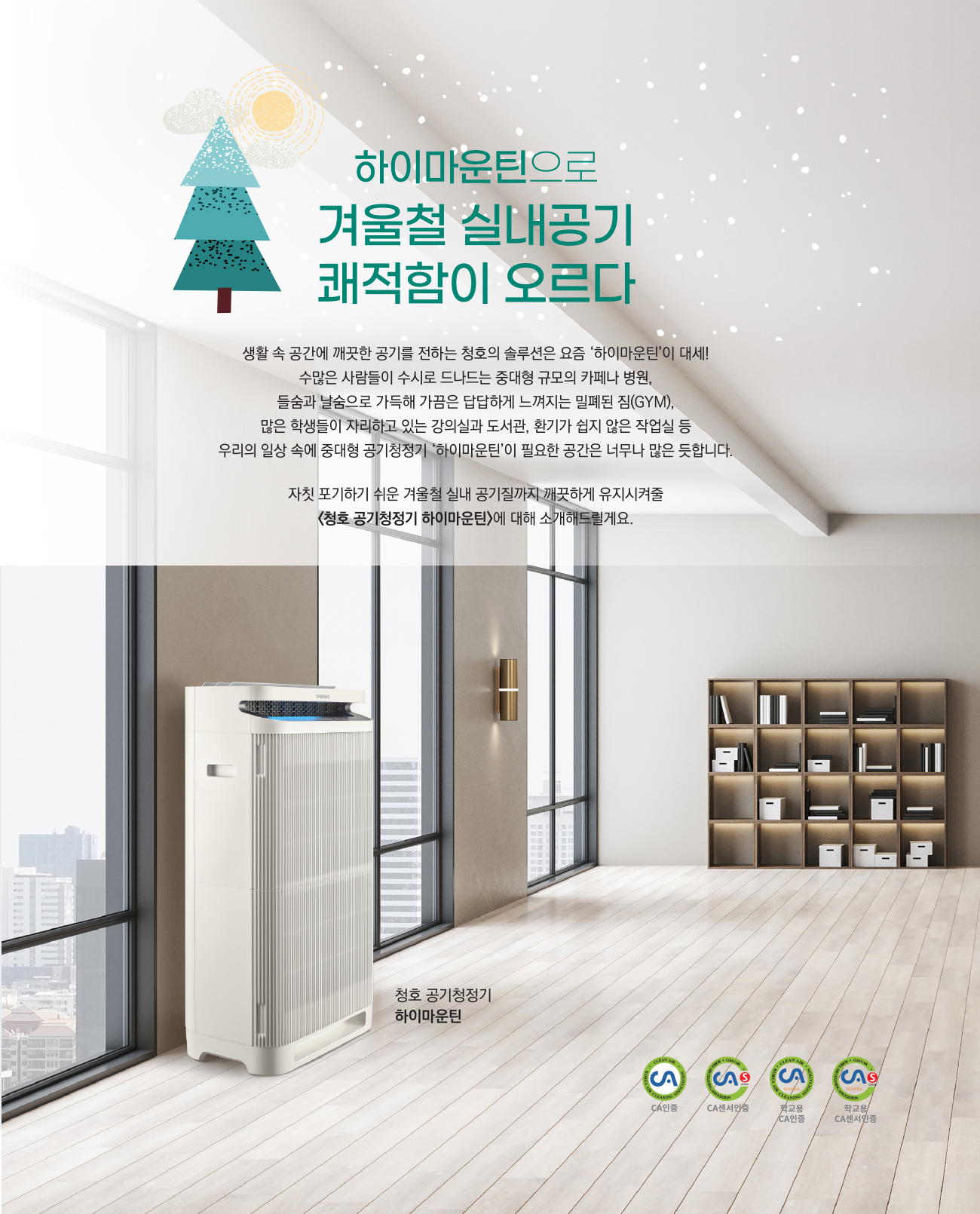 ‘하이마운틴’은 한국공기청정협회의 ‘CA인증, CA센서인증, 학교용 CA인증,